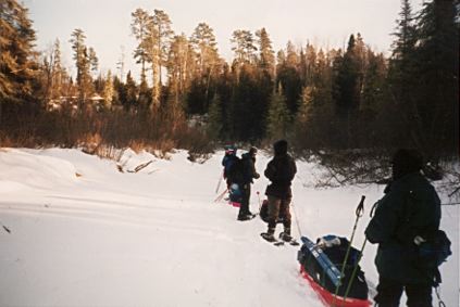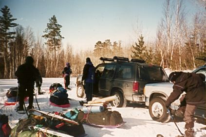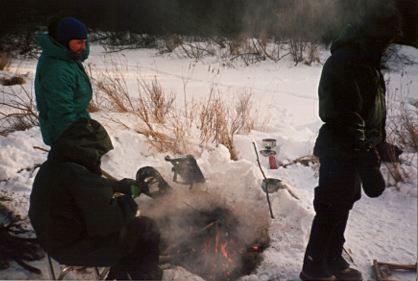 That night we got down to 16 below   zero (F). That was just a little too cold for some of the group. You have to have a little body fat on you to enjoy winter camping. We decided to abandon that route, return to town, and re-evaluate the situation (a warm front was due in).