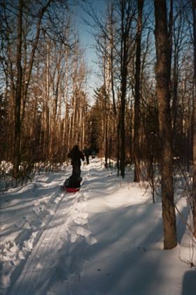 This short trip was still fun, though it was a learning experience for some. One interesting point is that when we went in we were paving new tracks on virgin snow. When we left the next day there were wolf tracks in the path we'd paved. There were two or three wolves, and they'd walked past us by no more than twenty feet or so. It was pretty neat.